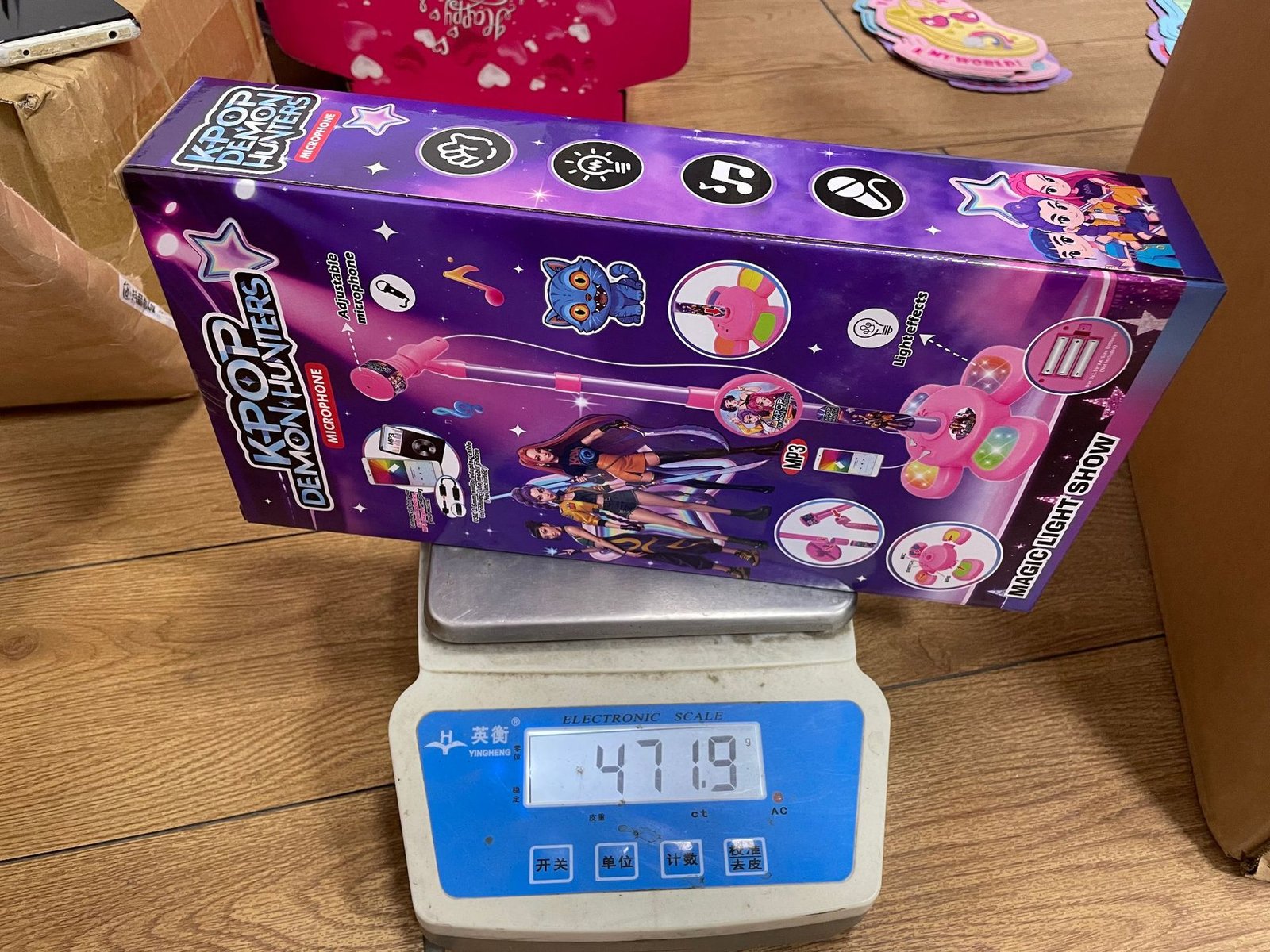 KPOPDE also offers related items like the Demon Hunter Girl Group guitar (model 53522, 442g) and singing machine (5529A, 400g). You can bundle a microphone + guitar as a “rock band starter kit” or offer all three as a complete music set. This increases average order value.